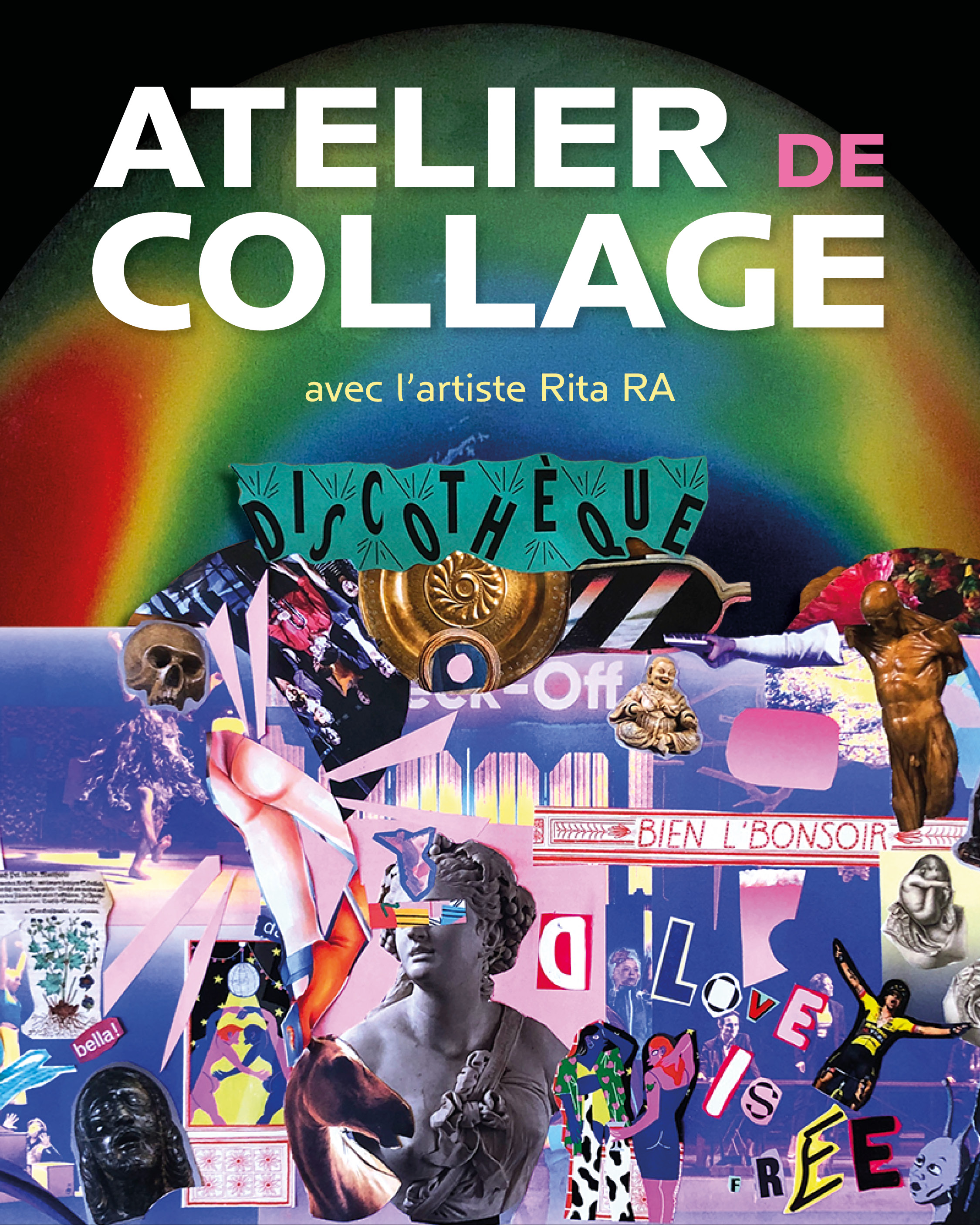 atelier collages avecl'artiste rita raLe samedi 13 Décembre de 15h à 18h. Venez créer des collages originaux à partir d'affiches, de magazines et autres éléments graphiques de récupération !
